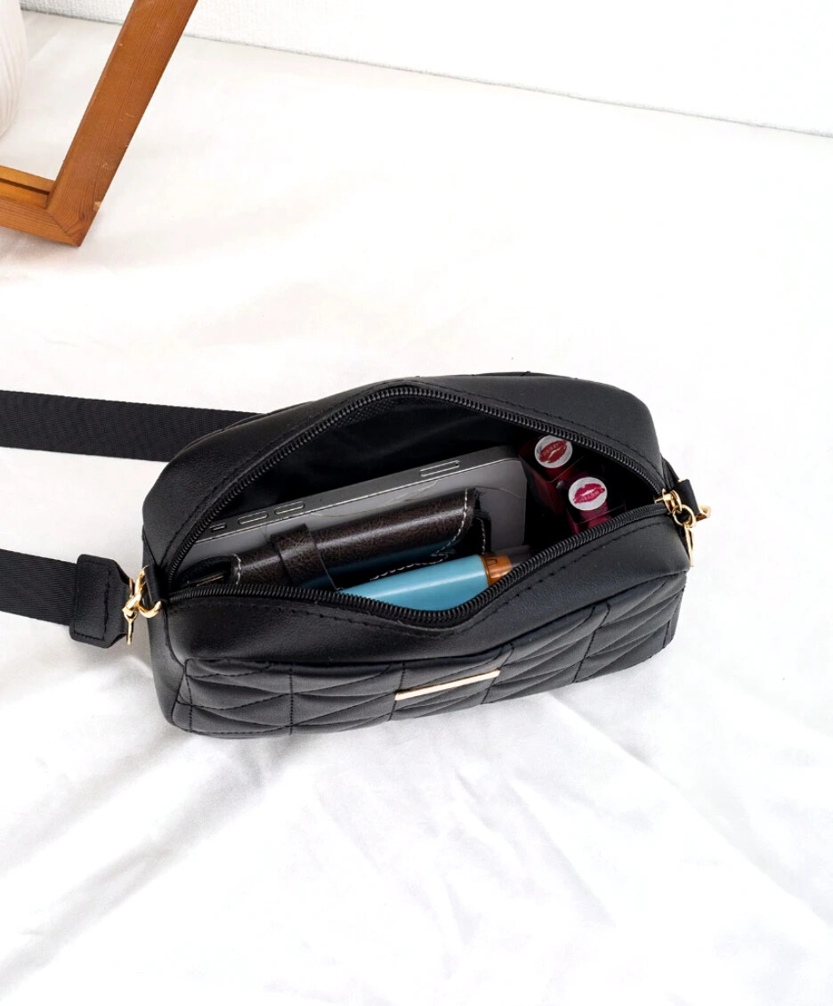 Sac à bandoulière en cuir noir, élégant sac matelassé pour femme