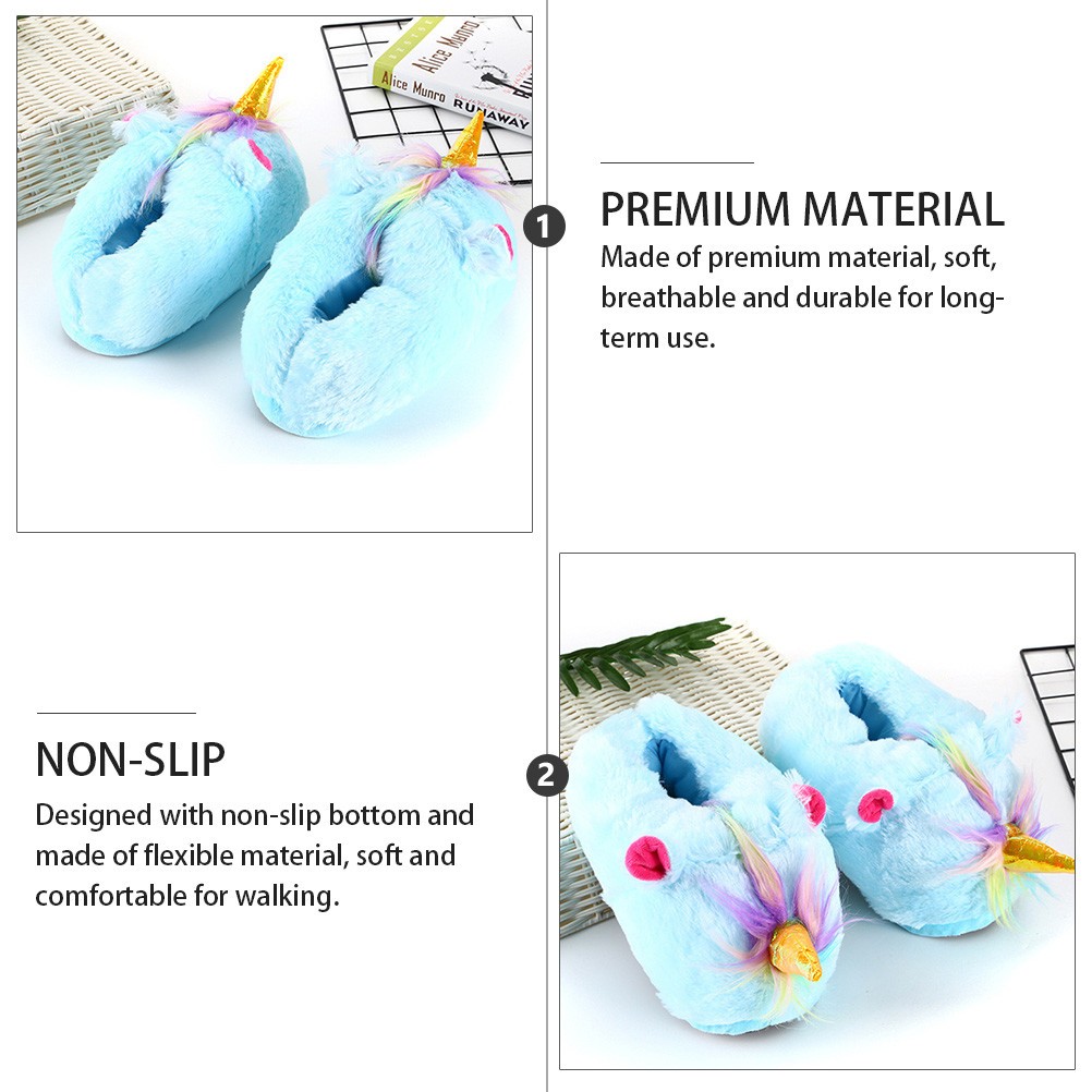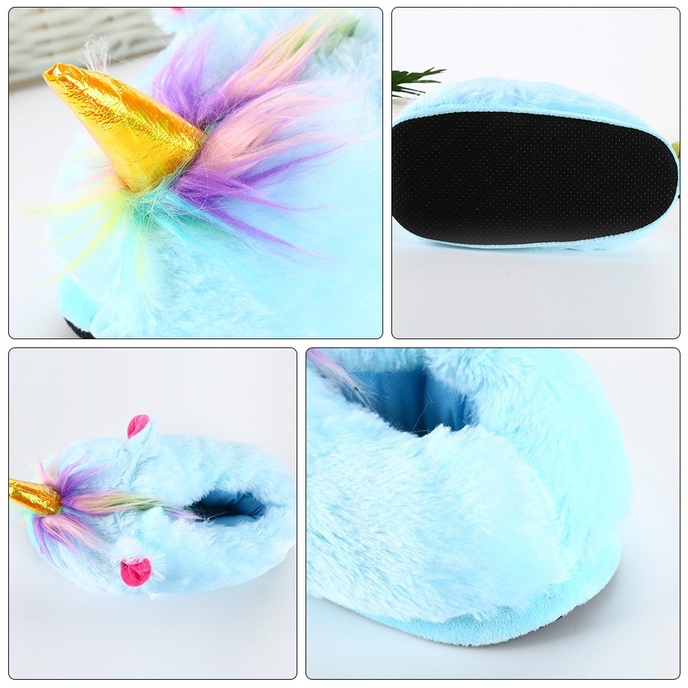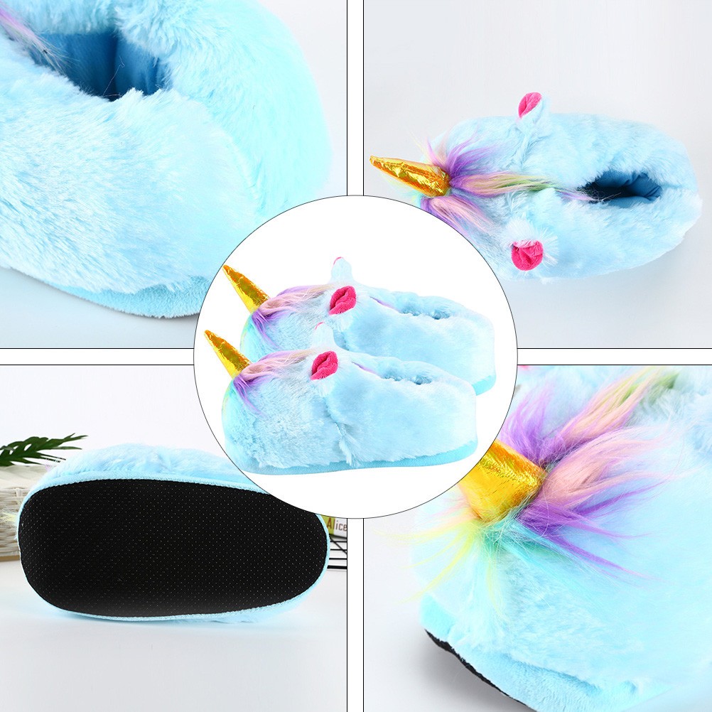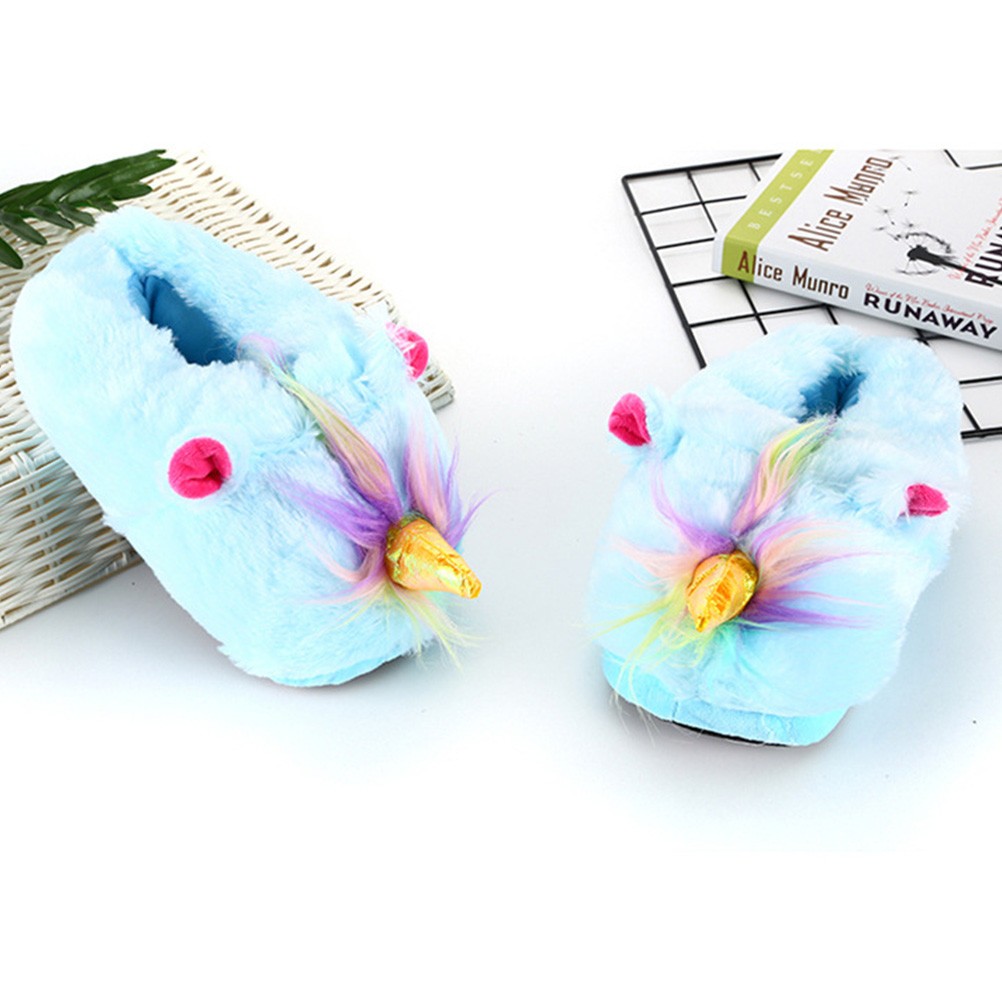 1 paire de pantoufles d'ornement de licorne Chaussures chaudes d'hiver