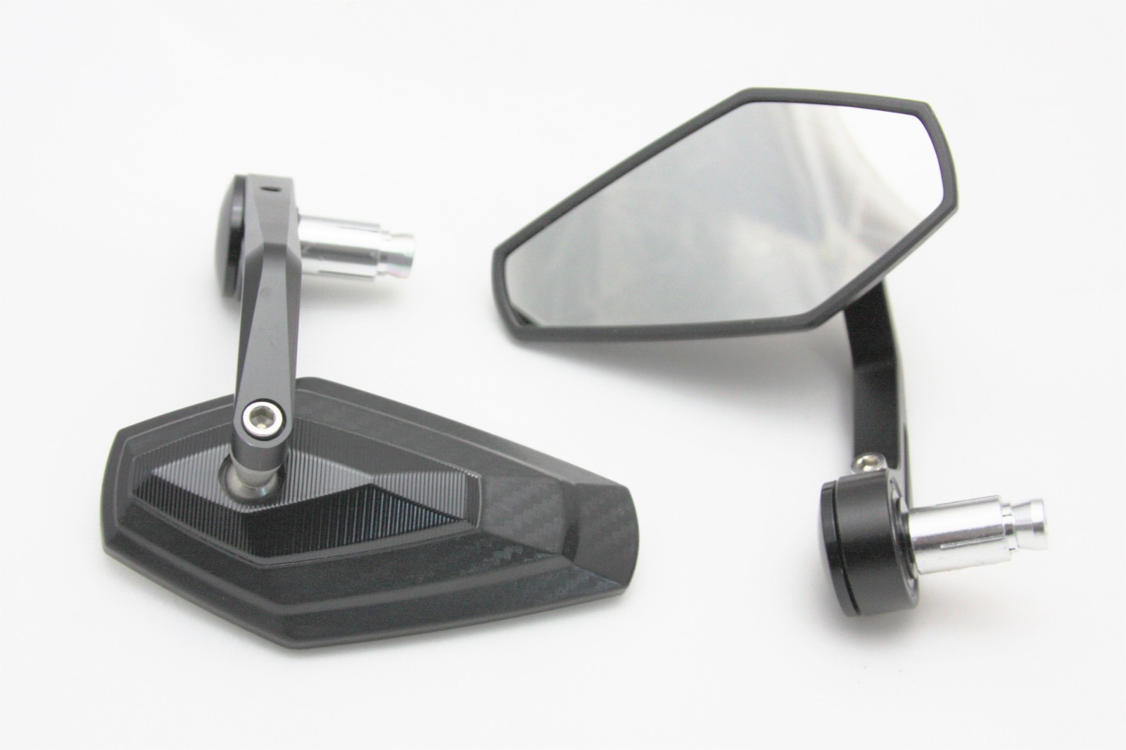 Pour diamètre de guidon 13mm ou 18mm. Paire de rétroviseurs embout de guidon ou 1/2 guidon. En Alu et Carbone 3D effect.