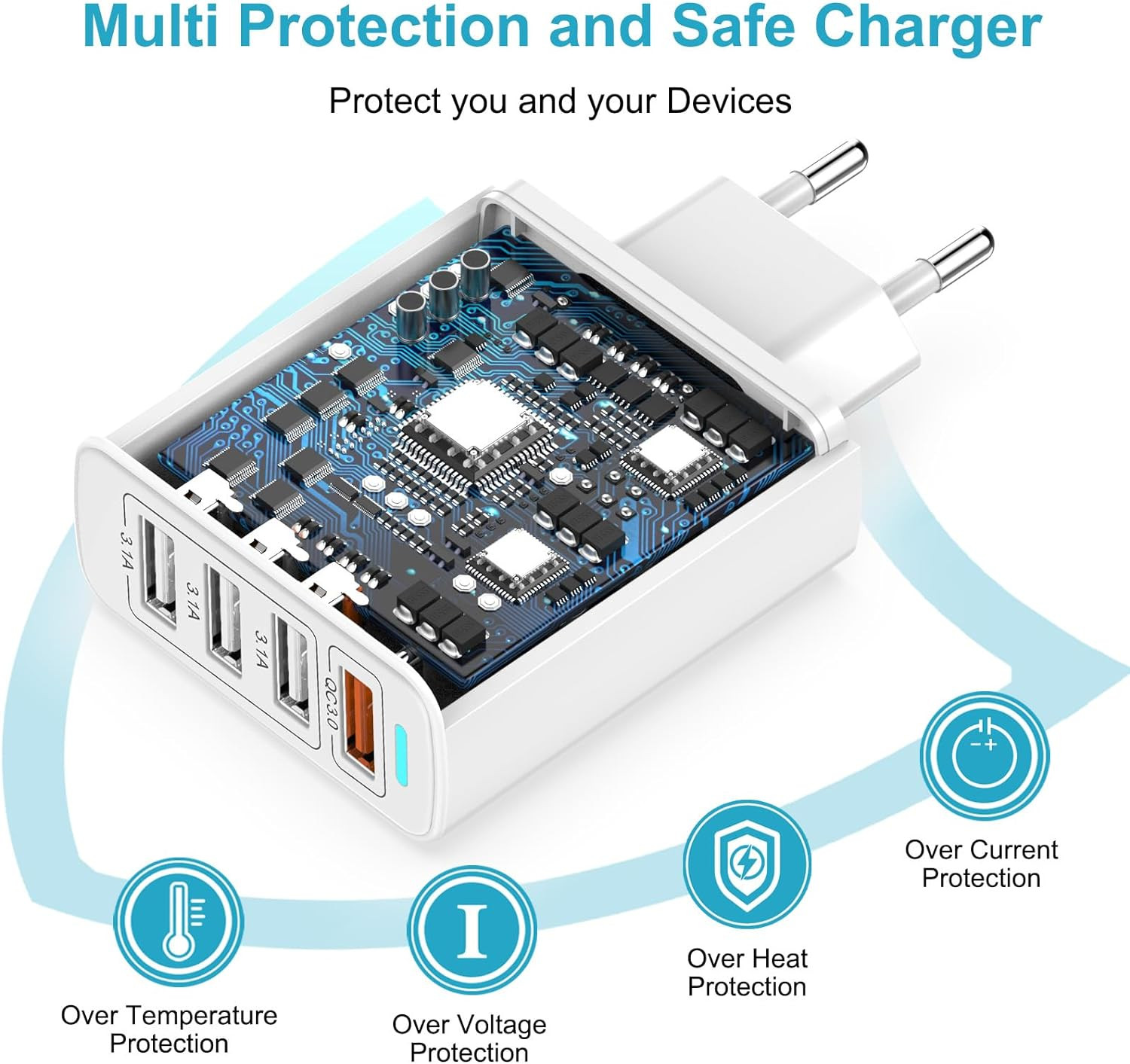 Chargeur USB Multiple 4 Ports Prise USB Secteur Internationale 5V/4.4 A Smart IC