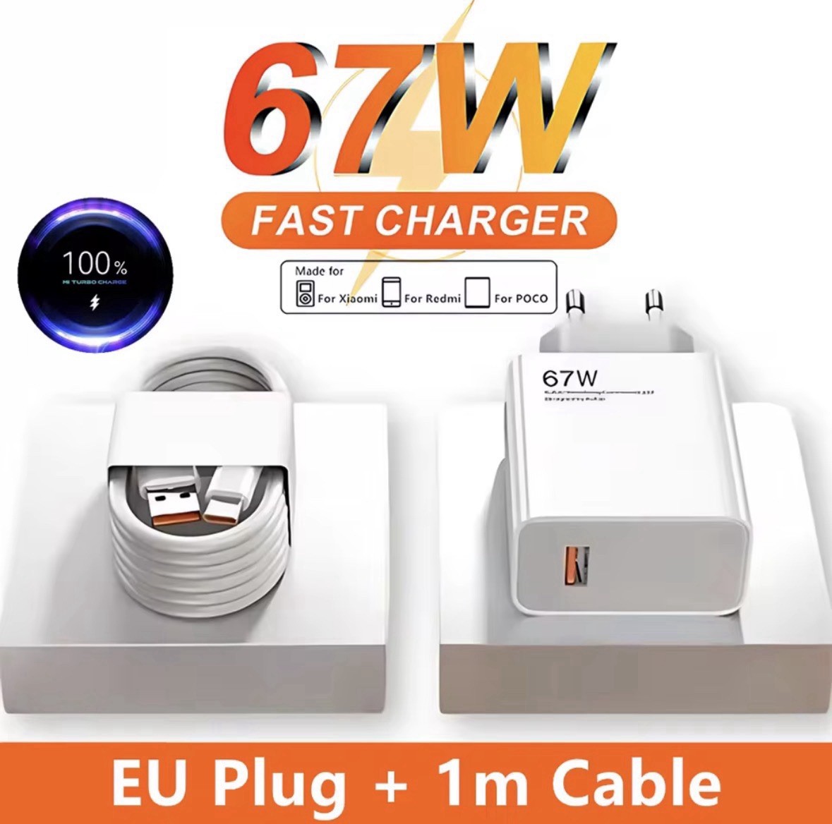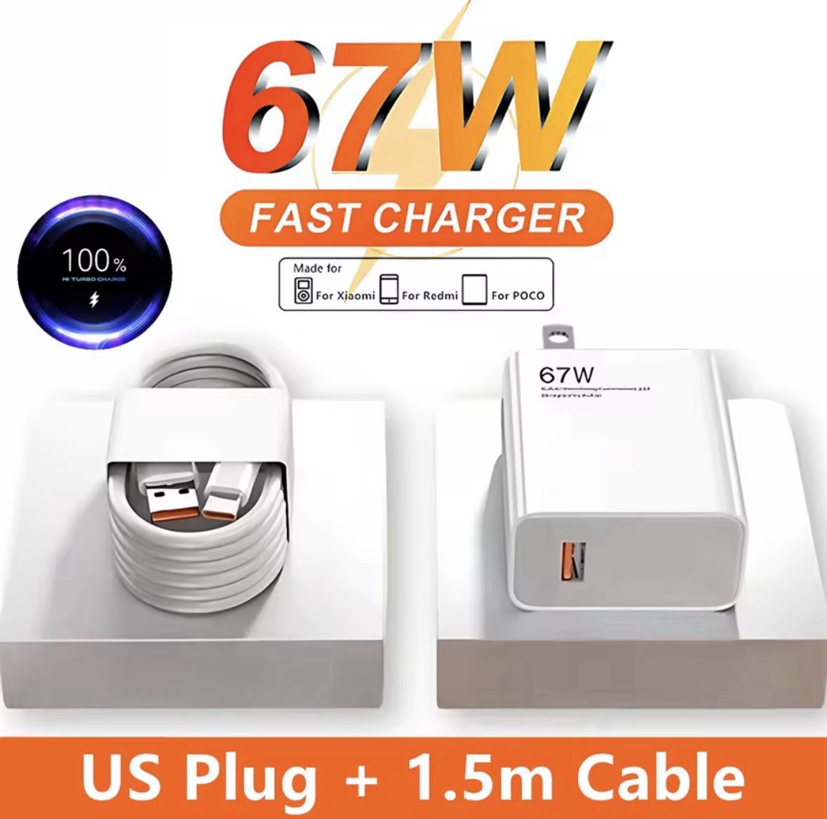 Chargeur 67W Ultra Rapide Xiaomi Recharge Express USB-C iPhone Samsung Universel
